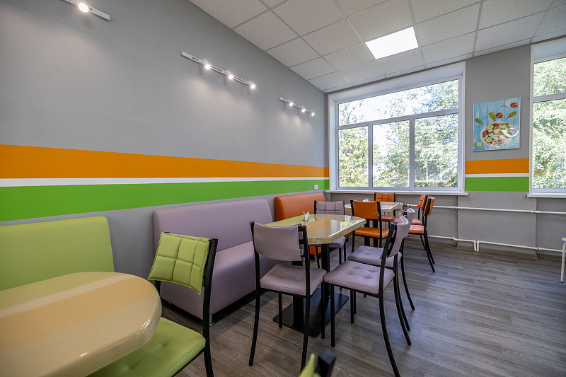 За короткие сроки строители привели помещение в порядок: отремонтировали кухню и обеденный зал, уложили кафель и покрасили стены. Также школа закупила новую мебель в рамках программы модернизации.