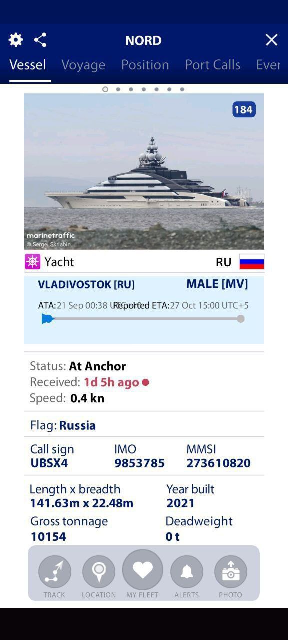 Теперь, покинув Владивосток, Nord направляется к Мальдивским островам.