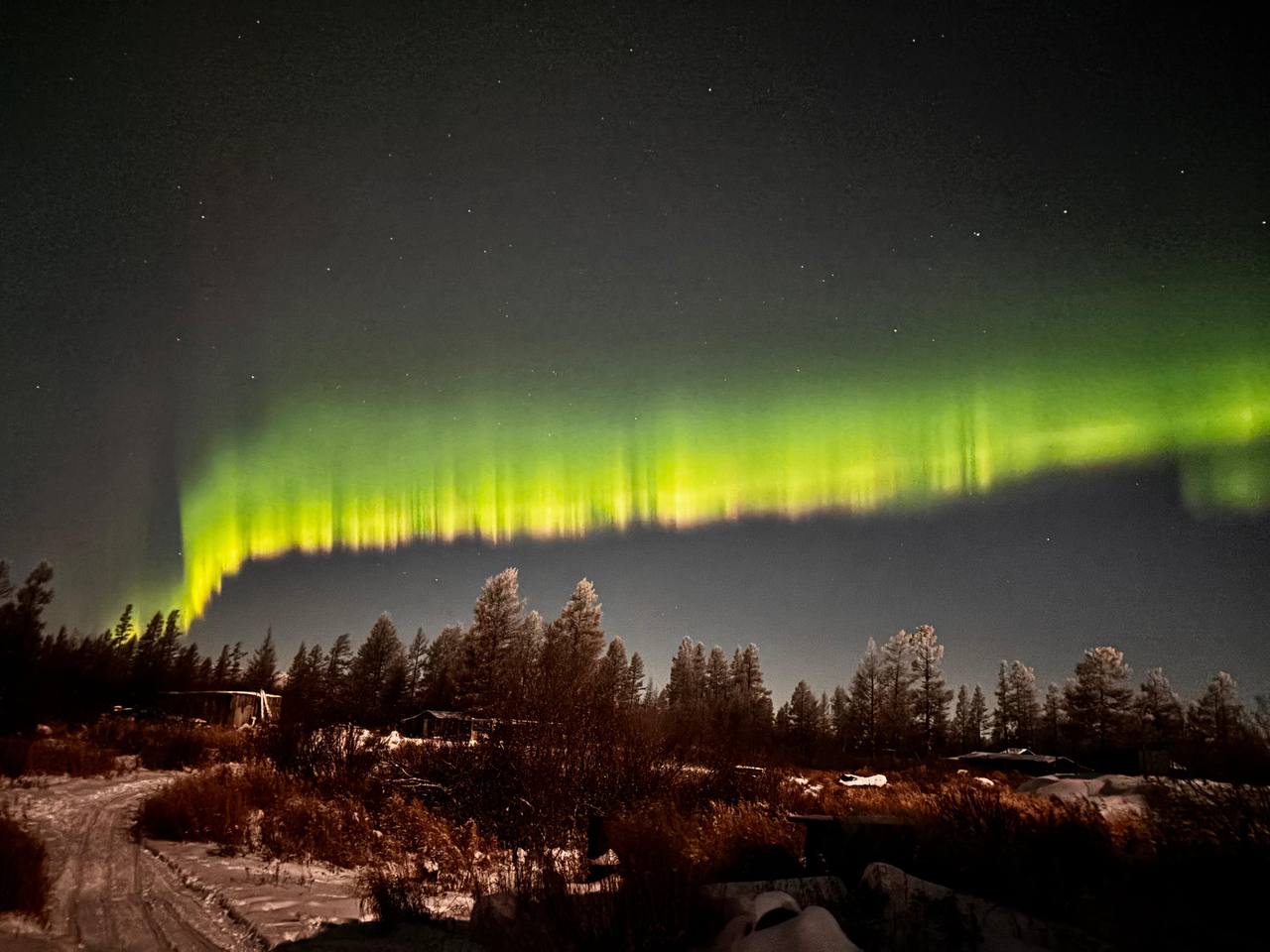 На Камчатке жителям села Аянка прошлой ночью посчастливилось увидеть северное сияние. Желто-зеленые всполохи озарили небо и подарили местным волшебные впечатления, сообщает РИА VladNews со ссылкой на тг-канал Камчатский север.