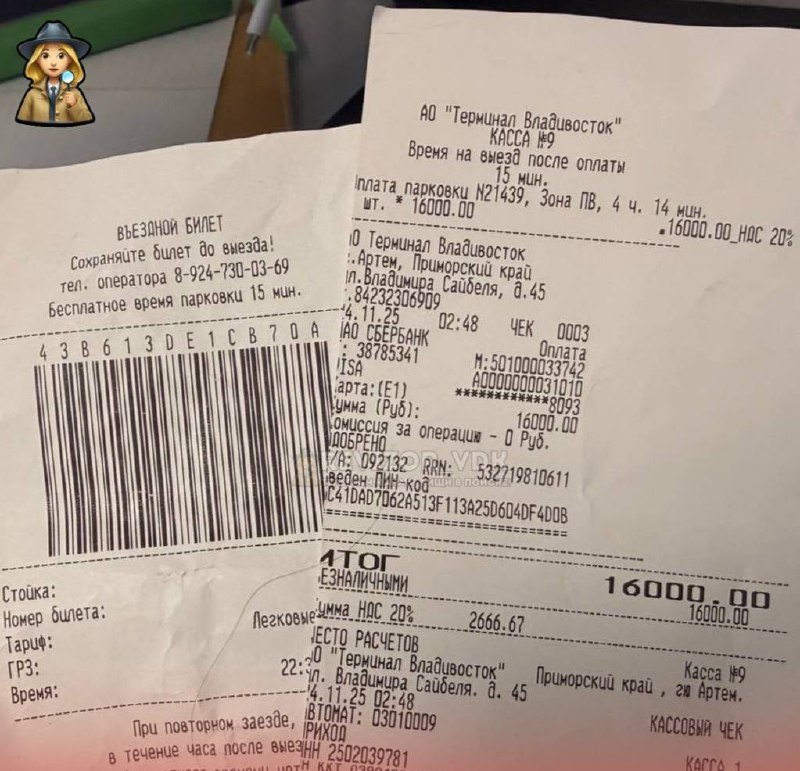 Водитель во Владивостоке столкнулся с неожиданной проблемой в аэропорту: ожидая прибытия знакомого, чей рейс задержался почти на три часа, он заплатил 16 тысяч рублей за четыре часа стоянки, сообщает РИА VladNews со ссылкой на Telegram-канал revizor_vdk.