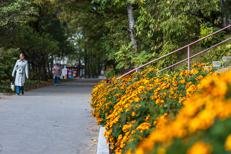 «Особое внимание при озеленении города мы уделяем подбору ассортимента растений. Каждый объект для нас особенный, необходимо учесть все факторы и риски: климатические условия, наличие сетей, влияние автомобильных дорог, назначение территории, непосредственное влияние человека, продумать сценарии, по которым эта территория будет существовать. В первую очередь, конечно, стараемся использовать дальневосточные виды, в последнее время акцент сделан на цветущие и хвойные: сосна густоцветковая, сосна корейская, ель корейская, абрикос, яблоня маньчжурская, груша уссурийская и т.д. Также высаживаем растения из других регионов, которые хорошо зарекомендовали себя в озеленении нашего города, такие как ель колючая, катальпа, конский каштан, различные декоративные яблони, а в этом году даже высадили персики. Надо отметить, что высадить растения – это только малая часть работ по озеленению, самая большая и сложная работа — это содержание и сохранение зелёных насаждений, чему мы уделяем наибольшее внимание. Хотелось бы отметить комплексный подход к озеленению: это и озеленение параллельно с ремонтом дорог либо после него. Также стремимся не просто высадить растения, а именно создать зелёную зону, например, проложить там же дорожку, или сделать подпорную стенку, отремонтировать или устроить лестницу, если это необходимо», – отметила Остюкова.