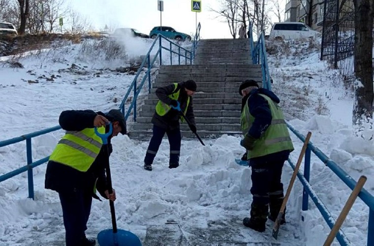 Надземные и наземные переходы, тротуары и лестницы очистили на Нерчинской, Маковского, Калинина, Батарейной, проспекте 100-летия Владивостока и ряде других улиц.