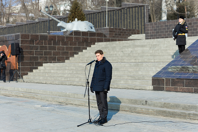 В памятном мероприятии приняли участие губернатор Приморского края Олег Кожемяко и глава Владивостока Константин Шестаков. Обращаясь к собравшимся, губернатор назвал этот день священным для страны.