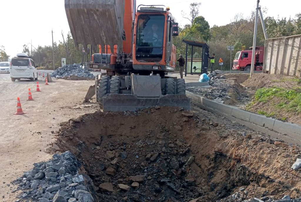На улице Якорная бухта (проезд к детскому лагерю «Маяк») в выходные проведена разработка грунта под кюветы и трубопроводы, выполнено устройство основания из скальника с последующим уплотнением. На отдельных участках дороги от Кэт в сторону Шигино реализованы работы по формированию основания из скального грунта и щебня. Параллельно осуществлен монтаж остановочных павильонов.