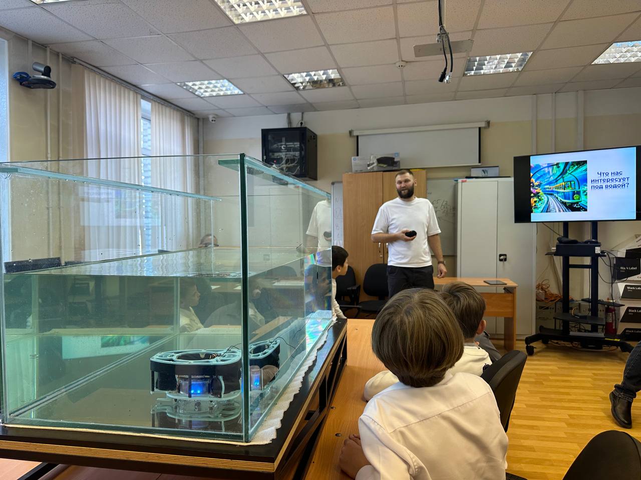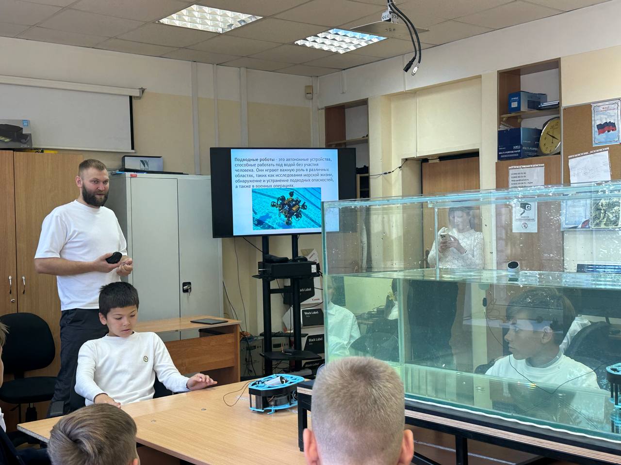 Урок провёл учитель информатики и технологии Павел Шабедько. По его словам, это было вводное занятие, на котором дети познакомились с историей развития подводных роботов и узнали, как такие устройства используются на практике.