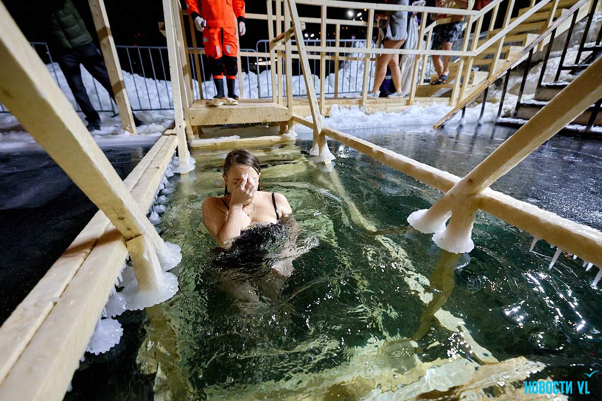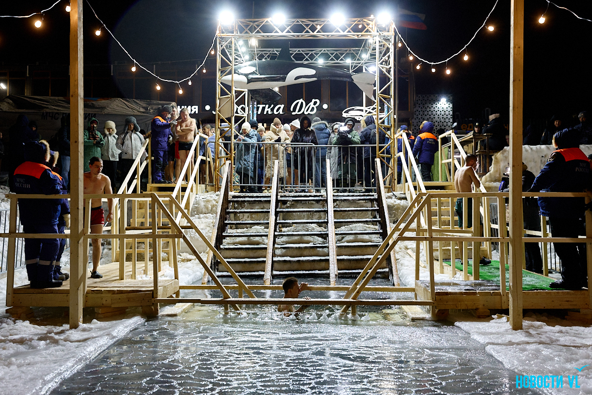 В ночь на понедельник на набережной Владивостока, у центра зимнего плавания «Косатка ДВ», прошли традиционные Крещенские купания. В этом году мероприятие выдалось камерным: основной поток желающих окунуться прошел до 23:00, а к полуночи у проруби остались лишь спасатели, сообщает РИА VladNews со ссылкой на VL.ru.